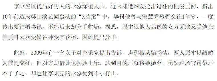 ——没错,连年曝出的宋慧乔与财阀两三事,就有爆料称中间东说念主是李秉宪,骨子上,宋慧乔和李秉宪差异当下,韩网就有爆料称,二东说念主差异是因为宋慧乔受不了李秉宪的某些时期……